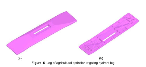 Figure 5 shows the initial CAD design of plastics part used for the sprinkler irrigation hydrant leg. One of the essential features of the part is that the part has to remain flat after injection; any warping during the injection causes operating problems.