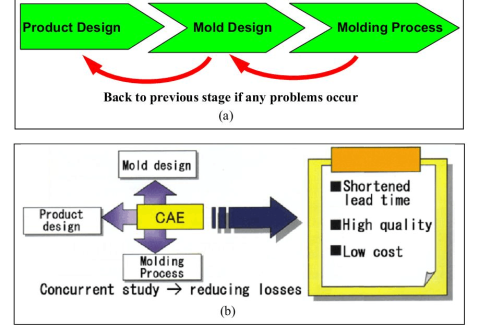 Figure 3 Methodologies in plastic injection mould design, a) Serial engineering b) Concurrent engineering